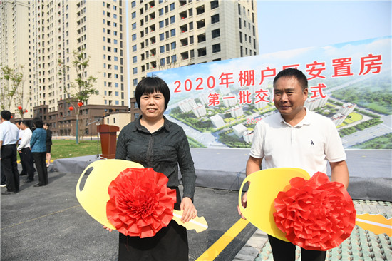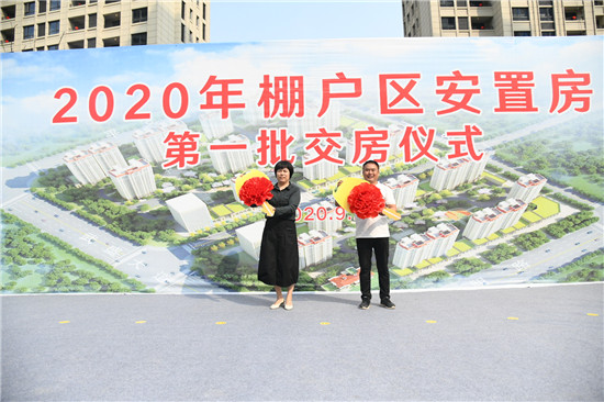 9月27日,2020年棚戶區(qū)安置房第一批交房,德和家園業(yè)主代表喜領鑰匙。記者 王映 攝 (③2)