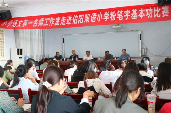 “漢字是中華民族的瑰寶,寫字教學(xué)是教師的一項(xiàng)基本功。此次縣硬筆書法協(xié)會(huì)應(yīng)邀來(lái)到伯陽(yáng)學(xué)校,舉行書法進(jìn)校園活動(dòng)。省書法家協(xié)會(huì)會(huì)員、縣書法家協(xié)會(huì)副主席李曉杰,省美術(shù)家協(xié)會(huì)會(huì)員劉龍飛作為特邀嘉賓現(xiàn)場(chǎng)揮毫潑墨與師生現(xiàn)場(chǎng)交流,將活動(dòng)引向高潮?!笨h硬筆書法協(xié)會(huì)主席鮑雁冰說(shuō),結(jié)合自己多年對(duì)硬筆、毛筆習(xí)字的感悟,重點(diǎn)對(duì)教師進(jìn)行“如何寫好字”的培訓(xùn),使教師知道練字既能提高寫字技能,又可修身養(yǎng)性,從而引發(fā)了教師練習(xí)書法的興趣。(③2)