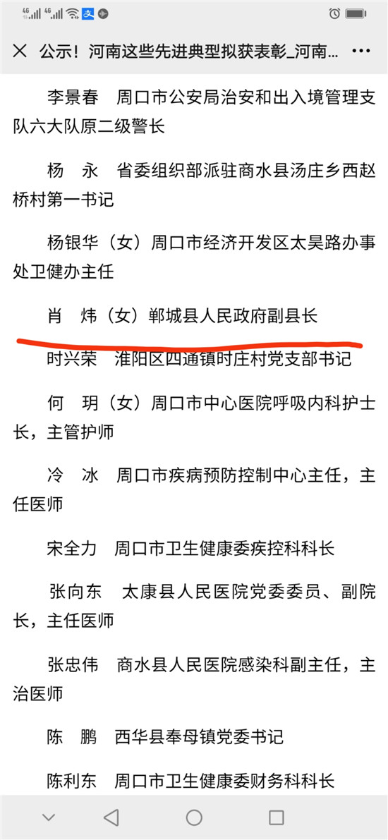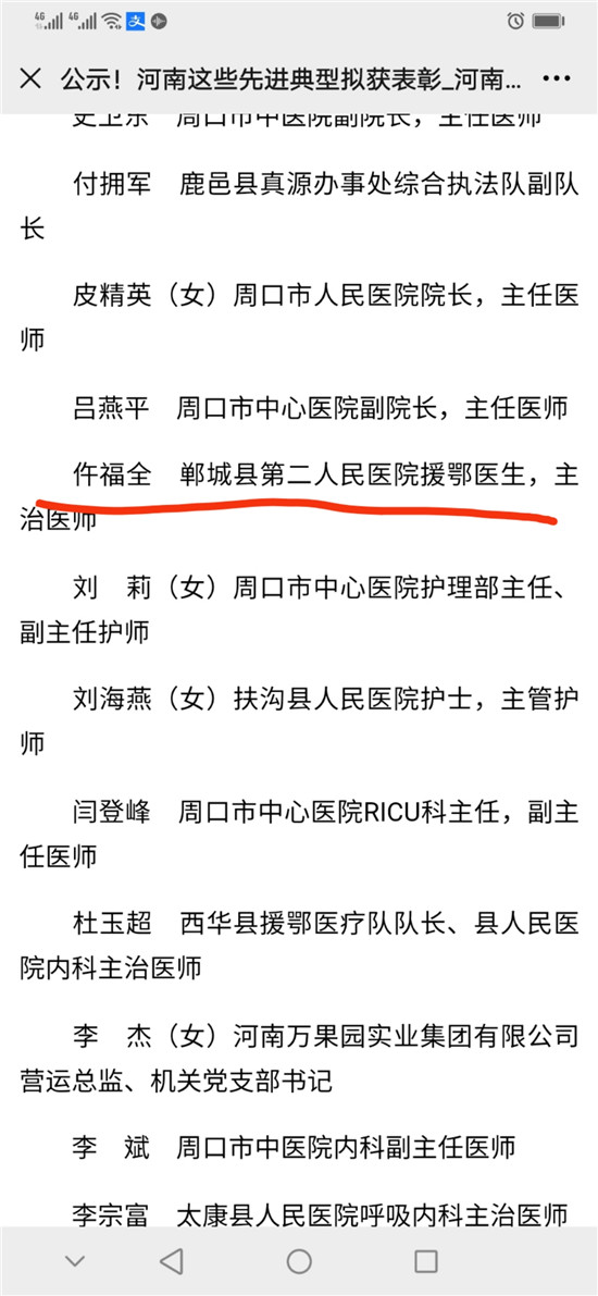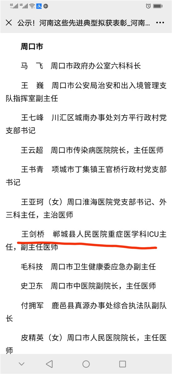 10月10日,河南省委、省政府表彰了一批抗擊新冠肺炎疫情先進個人、河南省抗擊新冠肺炎疫情先進集體、河南省優(yōu)秀共產(chǎn)黨員、河南省先進基層黨組織。其中,鄲城縣副縣長肖煒,縣第二人民醫(yī)院援鄂醫(yī)生、主治醫(yī)師仵福全,縣人民醫(yī)院重癥醫(yī)學科ICU主任、副主任醫(yī)師王劍橋3位同志,被評為河南省抗擊新冠肺炎疫情先進個人。
