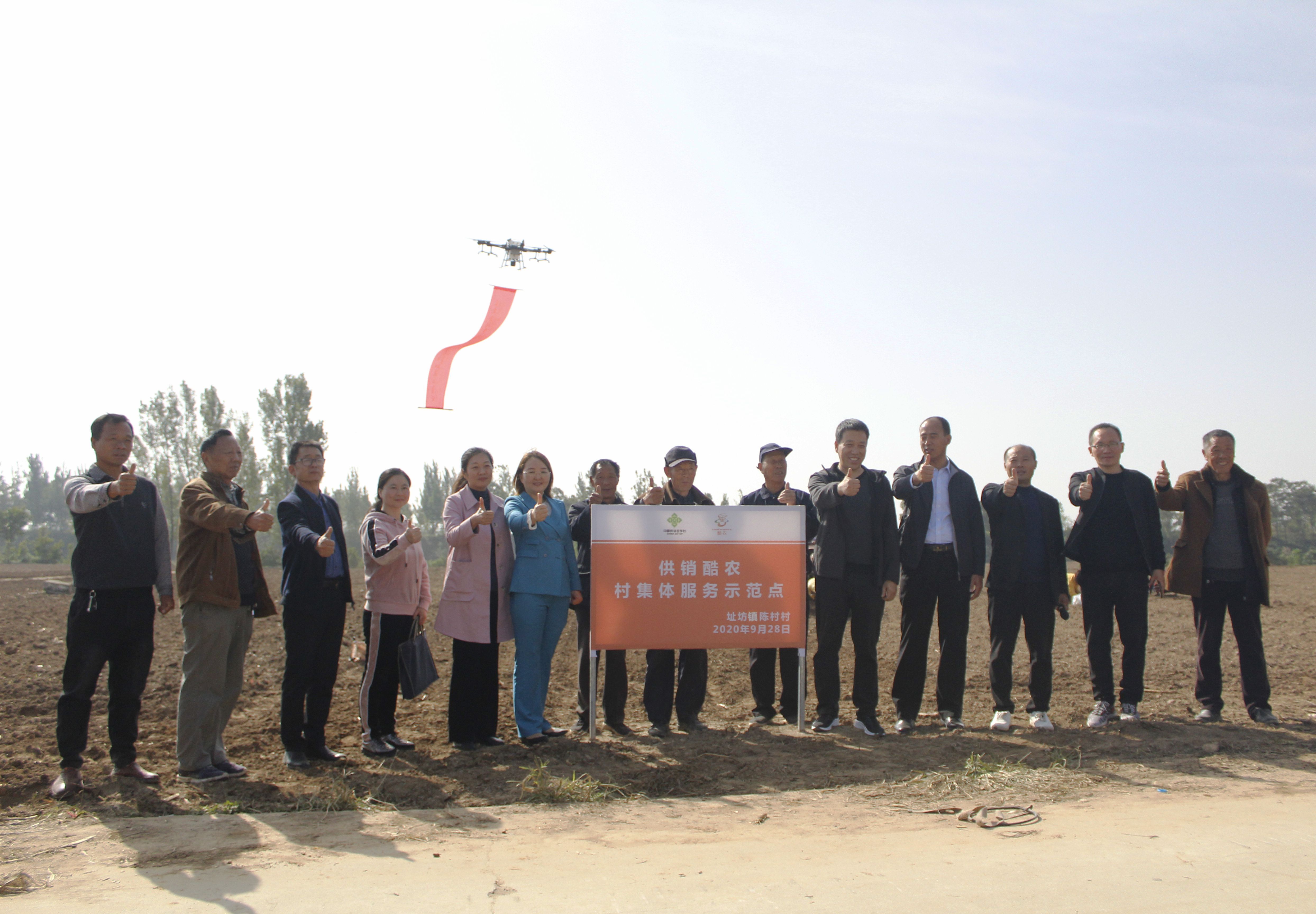 “合作的項(xiàng)目產(chǎn)業(yè)涵蓋了農(nóng)業(yè)生產(chǎn)資料、農(nóng)藥、生活用品的線上線下供應(yīng),土地大田托管,無人機(jī)械耕作、播種、農(nóng)藥噴施、收割等?!眴?dòng)儀式上,周口供銷集團(tuán)為農(nóng)事業(yè)部部長牛衛(wèi)東介紹說,陳村村集體股份經(jīng)濟(jì)合作社是周口市供銷集團(tuán)與河南酷農(nóng)科技有限公司(以下簡稱酷農(nóng)無人機(jī)公司)共同打造的無人機(jī)進(jìn)鄉(xiāng)村項(xiàng)目,旨在依靠該公司的科技支撐,發(fā)展智慧農(nóng)業(yè)、綠色農(nóng)業(yè),發(fā)揮供銷體系優(yōu)勢,通過整合無人機(jī)智能技術(shù)研發(fā)力量,形成無人機(jī)智能系統(tǒng)的管控?cái)?shù)據(jù)平臺,將硬件軟件數(shù)據(jù)管理方面形成獨(dú)有的供應(yīng)商生產(chǎn)力。