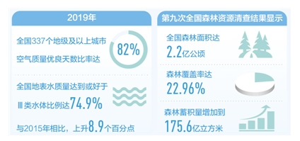 5年砥礪前行,污染防治攻堅戰(zhàn)全面推進。截至2019年底,“十三五”規(guī)劃綱要確定的生態(tài)環(huán)境領域9項約束性指標,有8項已提前完成。天藍水凈地綠的美麗中國正向我們走來。