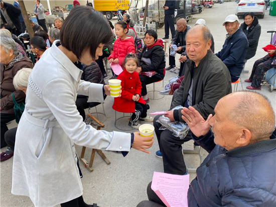 活動(dòng)現(xiàn)場(chǎng)熱鬧非凡,小橋街道辦黨工委書(shū)記侯明亮、主任王靜、人大工委主任張萬(wàn)勝等為在場(chǎng)群眾發(fā)放了“敬老倡議書(shū)”,與大家共同品鑒菊花茶。同時(shí),侯明亮為大家講述了重陽(yáng)節(jié)的由來(lái)、傳說(shuō)、習(xí)俗等傳統(tǒng)知識(shí)。大家為在場(chǎng)老人送上了精心準(zhǔn)備的帽子、棉拖鞋、棉坐墊等小禮品,獻(xiàn)上了佳節(jié)祝福,讓老人們感受黨和政府的溫暖及濃濃的節(jié)日氣氛,讓德孝之風(fēng)成為普遍共識(shí)和自覺(jué)行動(dòng)。
