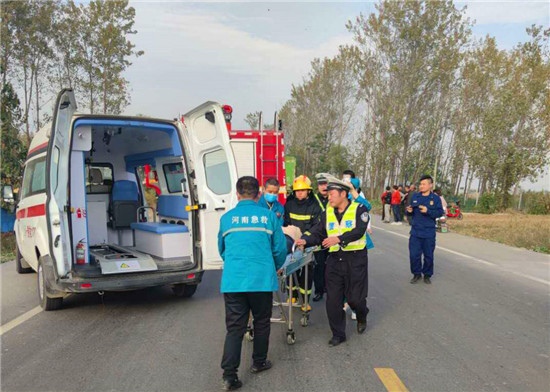 周口市商水縣公安局交警大隊(duì)為提高民警處置國(guó)、省道市縣結(jié)合部路段道路交通事故應(yīng)急救援能力,第一時(shí)間救助受傷人員,最大限度將交通事故造成的人員傷亡、財(cái)產(chǎn)損失、環(huán)境污染等危害后果降低到最小限度。10月26日下午3時(shí),在周口市交警支隊(duì)事故科王領(lǐng)科長(zhǎng)的協(xié)調(diào)指揮下,商水縣公安局交警大隊(duì)聯(lián)合駐馬店市上蔡縣公安局交警大隊(duì),在223省道(原219省道)商水縣與上蔡縣交界處的上蔡縣華陂鎮(zhèn)賴(lài)莊路段,模擬大貨車(chē)與微型貨車(chē)發(fā)生事故現(xiàn)場(chǎng),演練省道市際突發(fā)道路交通事故應(yīng)急救援行動(dòng)。