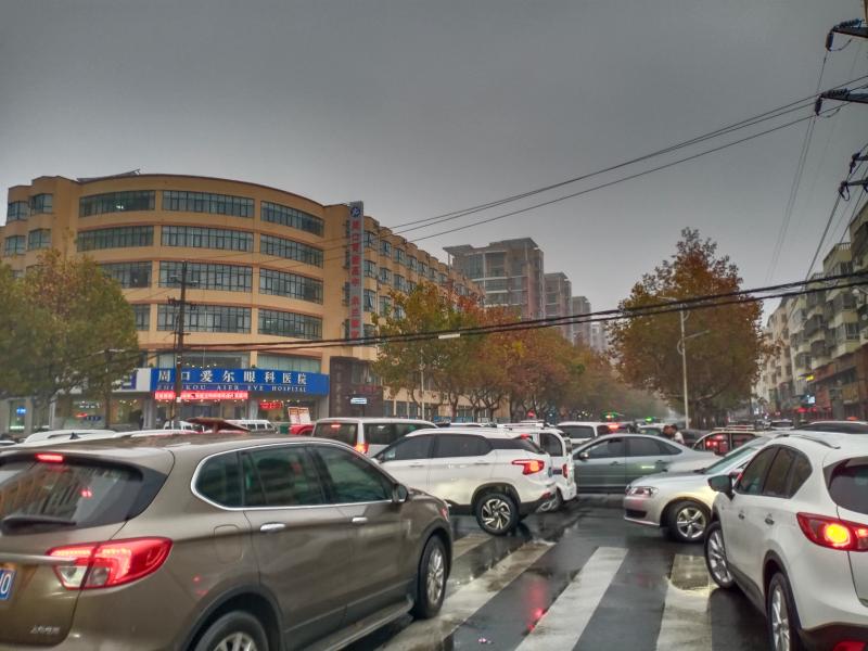 11月17日7時30分許,天空下起了小雨,在這樣的天氣里,開車出行的市民多了起來,記者在周口中心城區(qū)建安路與育新路交叉口附近看到,過往車輛把這里堵了起來,車輛前行緩慢。③7