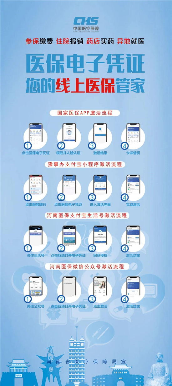 醫(yī)保電子憑證不依托實(shí)體卡,領(lǐng)取方式簡單,參保人員可以直接通過國家醫(yī)保App或者通過微信、支付寶,以及經(jīng)由國家醫(yī)保局和河南省醫(yī)療保障局認(rèn)證授權(quán)的第三方渠道,自助進(jìn)行認(rèn)證后激活使用,不需要到服務(wù)大廳領(lǐng)取和激活。