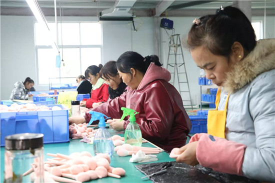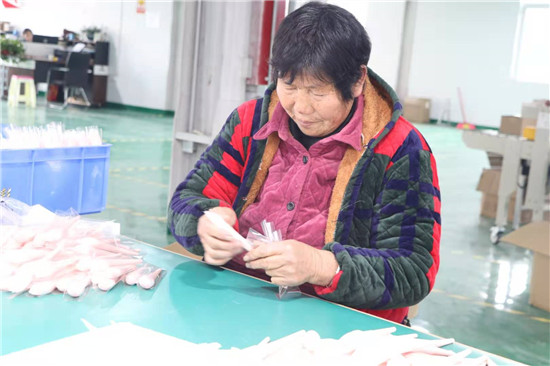 11月25日,家住鹿邑縣張店鎮(zhèn)劉莊村的孫小懶像往常一樣,吃過早餐后就到村里的河南雅彩美妝用具有限公司套管車間上班?!斑M廠務工一人,穩(wěn)定致富一家”這句話正是孫小懶家的真實寫照。前幾年,孫小懶的丈夫因病去世后,撇下三個兒子,最大的今年讀高中,最小的還在讀小學,主要勞動力的缺失讓孫小懶一家人的生活陷入困境。