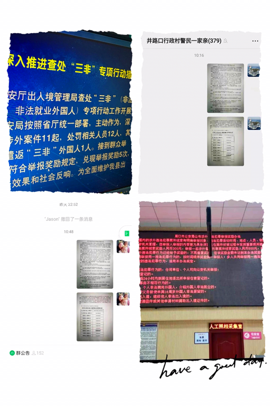 組織集中宣傳。為全面提升宣傳效果,鄲城縣公安局出入境管理科民警面對(duì)面向400余名群眾講解市公安局涉外違法犯罪舉報(bào)獎(jiǎng)勵(lì)辦法、國家移民管理局12項(xiàng)移民出入境便利政策措施和疫情防控常態(tài)化非常態(tài)管理等。同時(shí),利用社區(qū)警民微信群、平安建設(shè)微信群、警務(wù)微信群、一村一警工作微信群等不間斷宣傳,并要求每日轉(zhuǎn)發(fā)內(nèi)容截圖上報(bào),進(jìn)一步提高了人民群眾的知曉率和參與度。