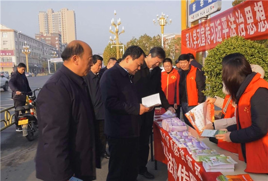 12月4日上午,鄲城縣在世紀廣場舉行國家憲法日宣傳活動,縣領導李全林、王獻超、李建軍、王偉、常青、馬超、劉輝、薛燕、謝超、蔣磊等縣四個班子領導出席活動。