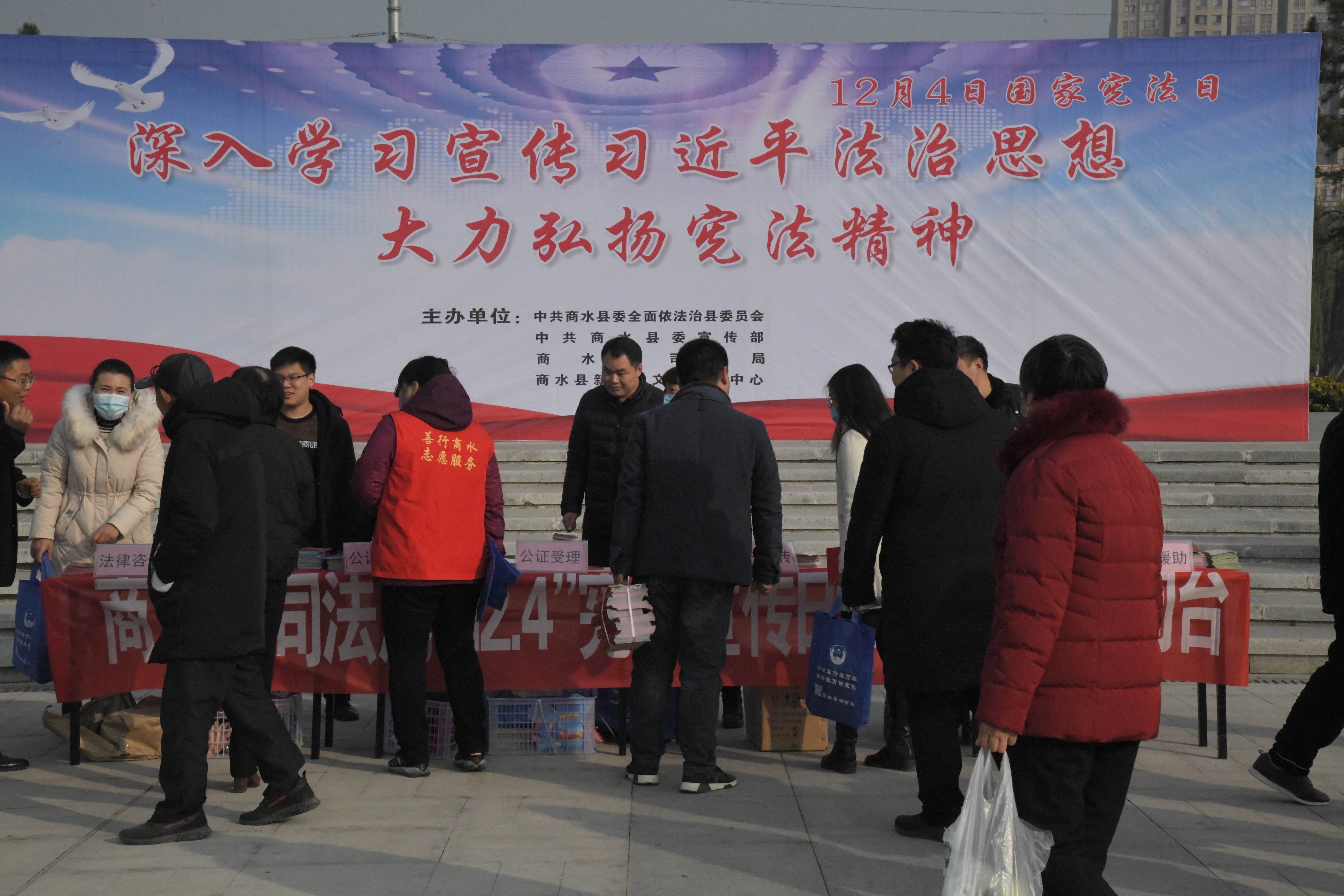 為深入學(xué)習(xí)宣傳習(xí)近平法治思想,弘揚憲法精神,維護憲法權(quán)威,推動憲法全面實施,在第七個國家憲法日來臨之際,商水縣在縣陽城公園開展“12.4國家憲法日”宣傳活動。