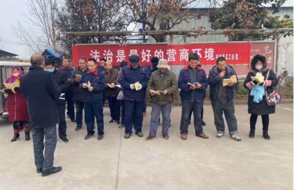 12月4日上午,市總工會(huì)到億星集團(tuán)為工會(huì)干部和職工進(jìn)行普法宣講,組織了職工通過(guò)豫工惠進(jìn)行憲法、民法典知識(shí)有獎(jiǎng)答題,市總工會(huì)法律顧問(wèn)、律師志愿者講解了《民法典》知識(shí),發(fā)放了工會(huì)“一法一條例”(工會(huì)法、河南省工會(huì)條例)、豫工惠使用手冊(cè)指南以及有關(guān)法律法規(guī)資料。市總工會(huì)黨組成員、副主席郭建軍組織參加了學(xué)習(xí)宣傳活動(dòng)。