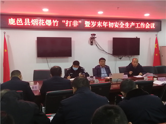 12月10日上午,在國家和省安全生產(chǎn)工作視頻會議結(jié)束后,鹿邑縣委常委、常務(wù)副縣長陸志杰,副縣長、縣公安局長任金瑞立即組織召開專題會議,對全縣煙花爆竹“打非”和歲末年初安全生產(chǎn)重點工作進行安排部署。