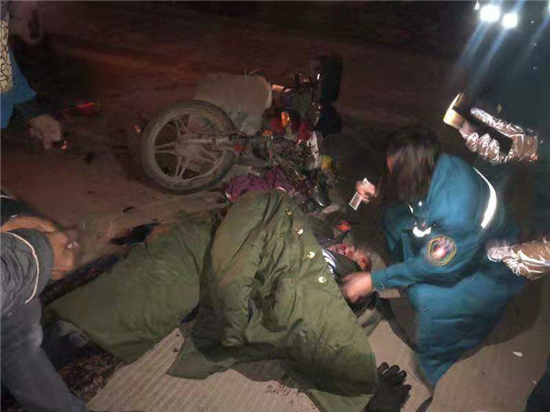 12月11日5時24分許,在商水縣城巴路、湯莊鄉(xiāng)大趙村扶貧服務(wù)點門口處,商水縣舒莊鄉(xiāng)吳莊村11組韓同首駕駛豫P1Z851號小型普通客車由西向東行駛時與相對方向行駛的舒莊鄉(xiāng)北王張村9組張義來駕駛的無牌兩輪摩托車發(fā)生交通事故,造成車輛損壞,張義來及無牌兩輪摩托車乘車人張金在受傷。商水縣交警大隊與周口人和醫(yī)院立即啟動“警醫(yī)結(jié)合”救治機制,開通綠色入院通道,采取零繳費先救治措施,對傷者迅速進(jìn)行救治,傷者暫時還在救治中。此事故的傷員救治過程,充分展現(xiàn)了“警醫(yī)合作”機制的優(yōu)越性和可行性,傷者家屬對公安機關(guān)和醫(yī)院十分感謝。①15