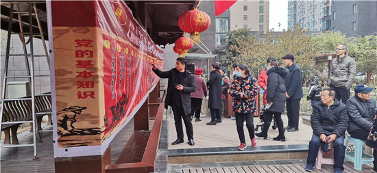 12月11日上午,在中心城區(qū)文昌大道的金色東方社區(qū),川匯區(qū)文聯(lián)舉辦的一場(chǎng)“零距離初心課堂”走進(jìn)基層群眾,普及黨的知識(shí),受到群眾的喜愛(ài)。