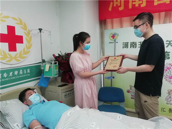 “王俊男先生,感謝您成為一名光榮的造血干細胞捐獻者,您的偉大善舉將使血液病患者獲得新生。”在河南紅十字會為王俊男頒發(fā)的榮譽證書上,給予了他最崇高的敬意。