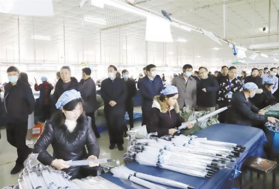 12月23日下午,在鄲城縣舉行的中國日用雜品工業(yè)協(xié)會制傘專業(yè)委員會五屆五次暨六屆一次會員代表大會中,來自全國制傘行業(yè)的精英們先后來到鄲城會客廳、傘業(yè)產業(yè)園、兄和家居、返鄉(xiāng)創(chuàng)業(yè)園、洺河森林樂園、鄲城一高、人民公園、體育場等地,實地感受鄲城高質量發(fā)展成果和傘業(yè)發(fā)展?jié)摿?,共謀中國傘業(yè)的發(fā)展前景。 記者 徐松 攝