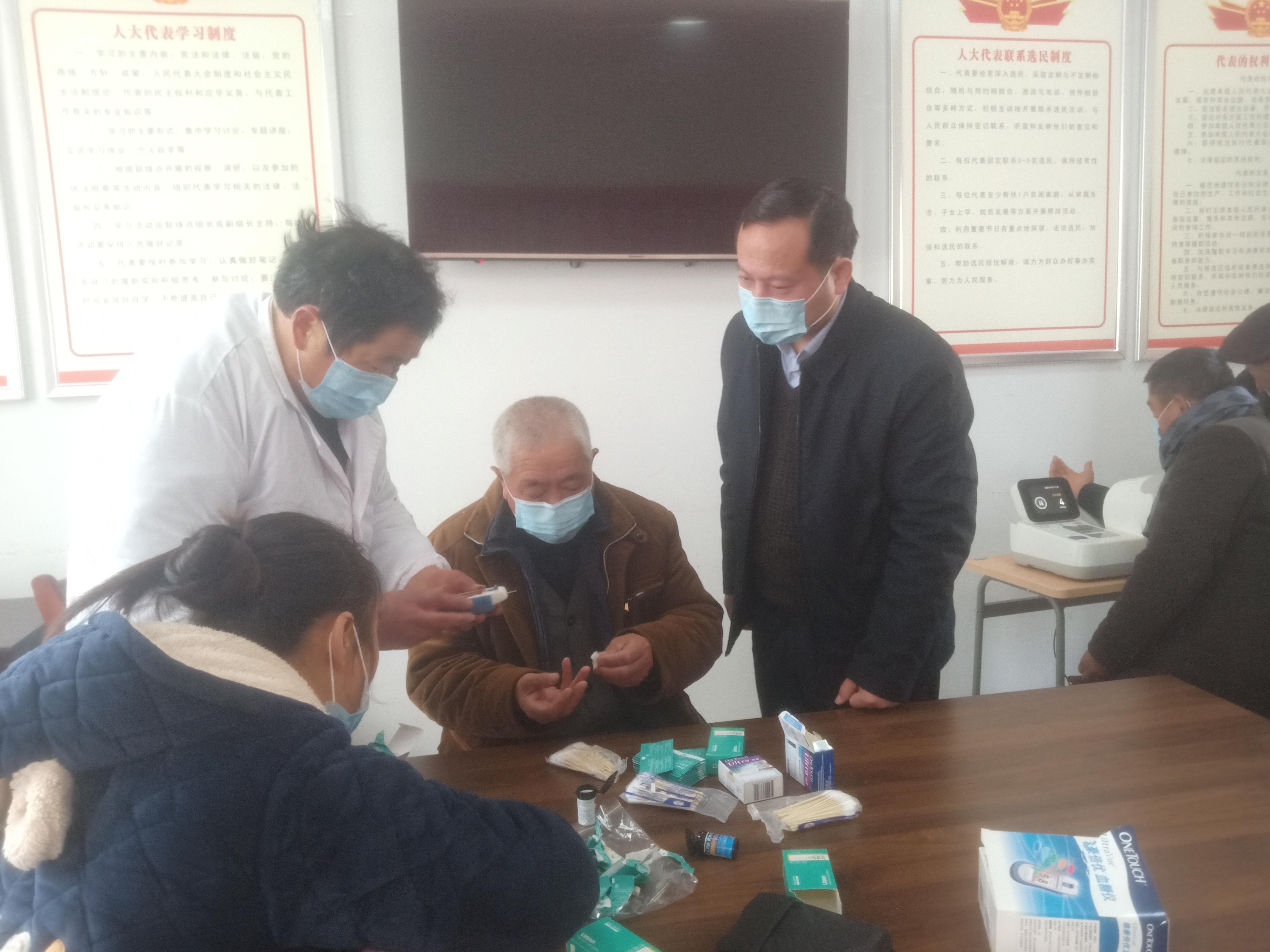 沒有全民健康,就沒有全面小康。省委直屬機關工委聯(lián)合省消防救援總隊捐贈6萬余元,采購了較大型的全自動電子血壓計和測血糖儀器,元旦節(jié)期間為村民提供逐人健康服務,并建立村民健康檔案。村民們格外高興,老年人樂得合不攏嘴:“咦!這些儀器設備真先進!”“看,俺老兩口都80多歲了,血壓正常、血糖也正常著哩”。檢查結果一出來,也有的村民不太高興:“我才30多歲,血壓為啥恁高,醫(yī)生需要咋治療?”“醫(yī)生,我這血糖高得很,為啥天天鍛煉還不行?”隨后,醫(yī)生及時向群眾們普及了健康知識,并表示以后這些儀器設備放在村黨群服務中心開展常態(tài)化服務。