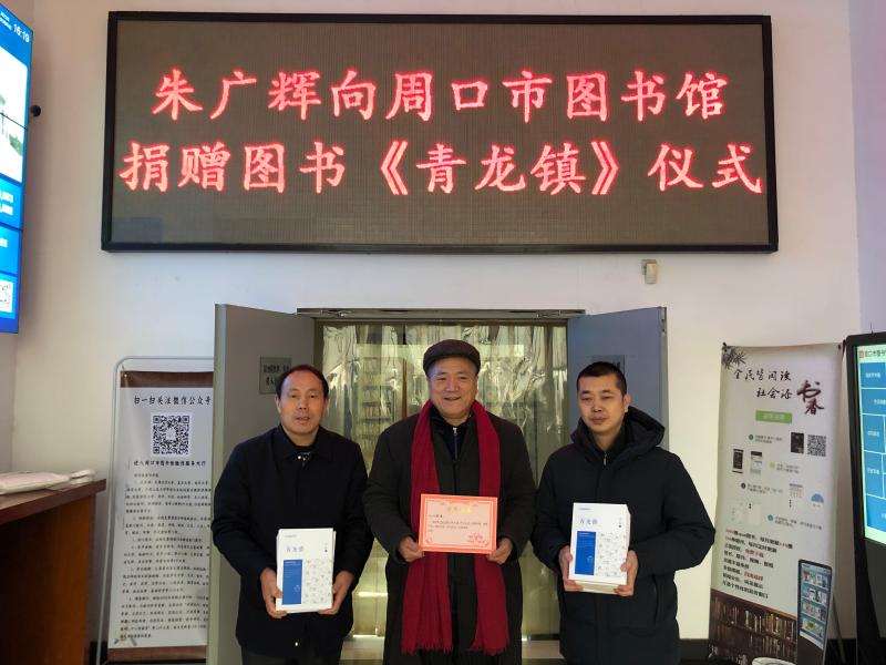 市圖書館館長(zhǎng)李佳說,朱廣輝是我市知名作家,他一直致力于文化事業(yè),為推動(dòng)和宣傳周口文化做出了一定貢獻(xiàn)。朱廣輝將《青龍鎮(zhèn)》小說集捐贈(zèng)給市圖書館,體現(xiàn)了他濃濃的問人情懷和作為作家的社會(huì)擔(dān)當(dāng)。市圖書館希望我市作家廣泛參與捐贈(zèng),發(fā)揮圖書傳承文化、傳遞文明價(jià)值,進(jìn)一步推進(jìn)我市文化自信。②9