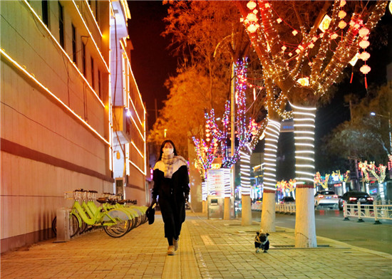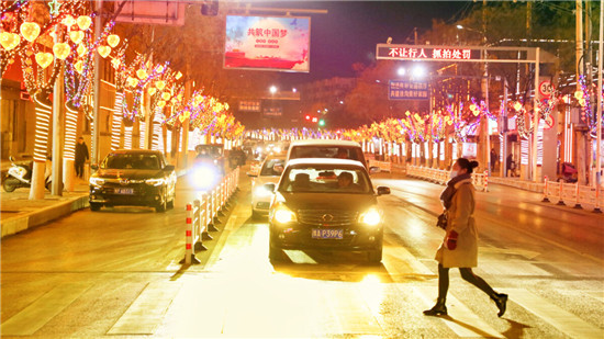 1月7日晚,扶溝縣城桐丘路,放眼望去,整條街道裝飾得色彩繽斕,形式各異的燈飾流光溢彩,美不勝收。景觀樹(shù)搖身一變,成了五彩繽紛的“星星樹(shù)”,一串串紅燈籠高高掛起,一顆顆“中國(guó)心”錯(cuò)落有致,格外引人注目,引得路過(guò)的市民紛紛駐足拍照留念。