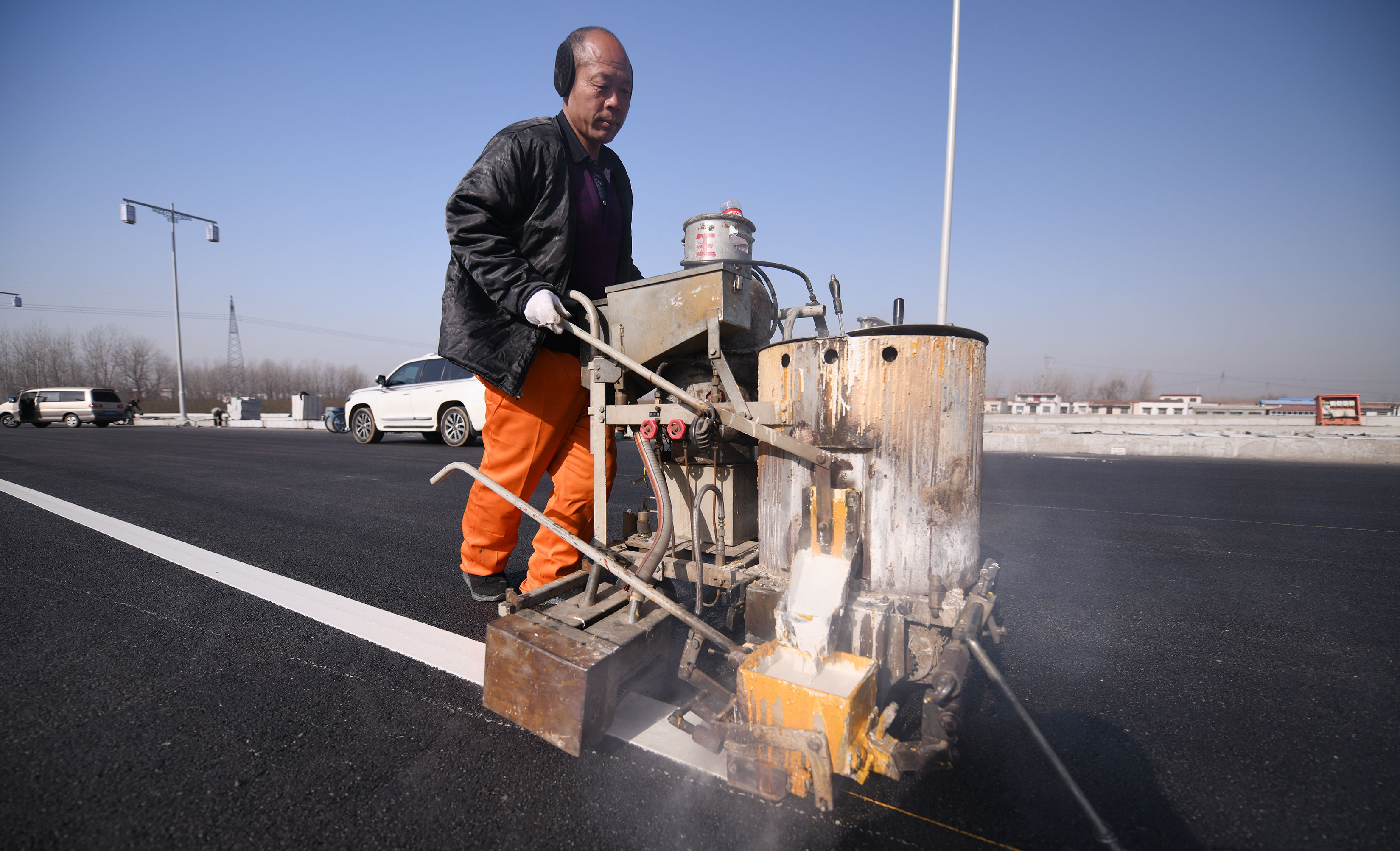 主道正在畫(huà)行車(chē)線