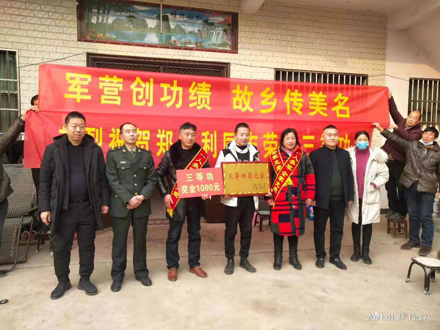 1月21日下午,太康縣高賢鄉(xiāng)保渡村現(xiàn)役軍人程勝杰家門前鑼鼓喧天,喜氣洋洋,熱鬧非凡。太康縣委常委、縣人武部部長于永前,政委郭立君,縣退役軍人事務(wù)局局長潘布道,高賢鄉(xiāng)黨委書記鄭宏等相關(guān)領(lǐng)導(dǎo)一行,為榮立二等功的程勝杰家屬送來了立功喜報(bào)、“二等功臣之家”牌匾及5000元慰問金。