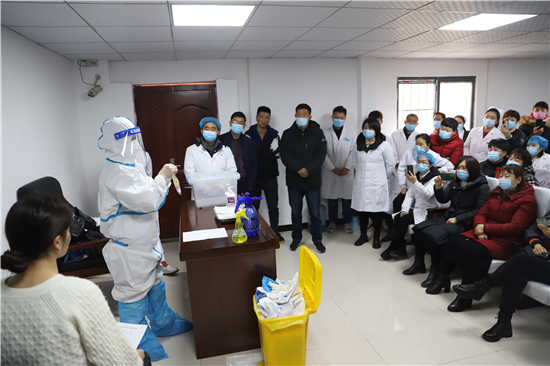 本次培訓(xùn)內(nèi)容主要包括衛(wèi)生檢驗、流行病學(xué)調(diào)查、消殺。在各專業(yè)培訓(xùn)中,首先由李埠口鄉(xiāng)衛(wèi)生院院長范建華就我市新冠肺炎疫情防控的政策、機構(gòu)建設(shè)、工作流程、防控措施、風(fēng)險點,以及下步工作任務(wù)進行了詳細講解。隨后,周口市人民醫(yī)院感控科副科長聶風(fēng)杰對疫情防控工作中個人防護要點及防護服的穿脫步驟進行了現(xiàn)場操作演練。周口市人民醫(yī)院發(fā)熱門診護士王越、感控科科員張曉露對新冠病毒核酸檢測采樣方法、個人防護、樣本存取轉(zhuǎn)運及交接流程等內(nèi)容進行了講解,并現(xiàn)場演示防護用品穿脫、口咽拭子、鼻咽拭子樣本采集等操作方法。港區(qū)文教衛(wèi)科技辦公室相關(guān)負責(zé)人表示,本次培訓(xùn),既著眼當(dāng)前疫情的防控需要,又放眼衛(wèi)生應(yīng)急隊伍的長遠發(fā)展,為進一步提高港區(qū)衛(wèi)健系統(tǒng)疫情防控應(yīng)急處置能力、努力筑牢全區(qū)廣大人民群眾生命和身體健康的防控堡壘起到了有力的技術(shù)支撐。③5