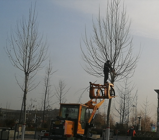 1月29日,在市城鄉(xiāng)一體化示范區(qū)政通路上,有工作人員正在修剪樹木。工作人員說,修剪樹木的最佳時(shí)期是冬季,一是樹上沒有葉子,這樣可以更輕松地查看樹的結(jié)構(gòu);二是冬季樹木正在休眠,在睡眠狀態(tài)下,樹木受到修剪的沖擊較小。圖為工作人員正在修剪路邊的行道樹。(周口日報(bào)·周道客戶端記者 馬月紅攝)