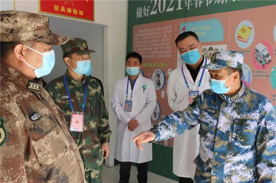 湯維政走進(jìn)內(nèi)科、外科、五官科、心電圖、心理測(cè)試等檢查科室,實(shí)地查看體檢站基礎(chǔ)設(shè)施、體檢流程、人員配備、疫情防控、后勤保障等情況。他看到體檢場(chǎng)所按照流程合理、尊重隱私、閉環(huán)管理的要求,結(jié)合疫情防控的需求優(yōu)化診室設(shè)置,醫(yī)務(wù)人員嚴(yán)格把控體檢項(xiàng)目的各個(gè)關(guān)口,給予了肯定和贊揚(yáng)。湯維政與現(xiàn)場(chǎng)候檢的應(yīng)征青年親切交談,了解他們的年齡、學(xué)歷、家庭等情況,對(duì)適齡青年、大學(xué)畢業(yè)生踴躍參軍、報(bào)效祖國的行為表示贊賞,勉勵(lì)他們積極接受祖國挑選,投身軍營建功立業(yè)。