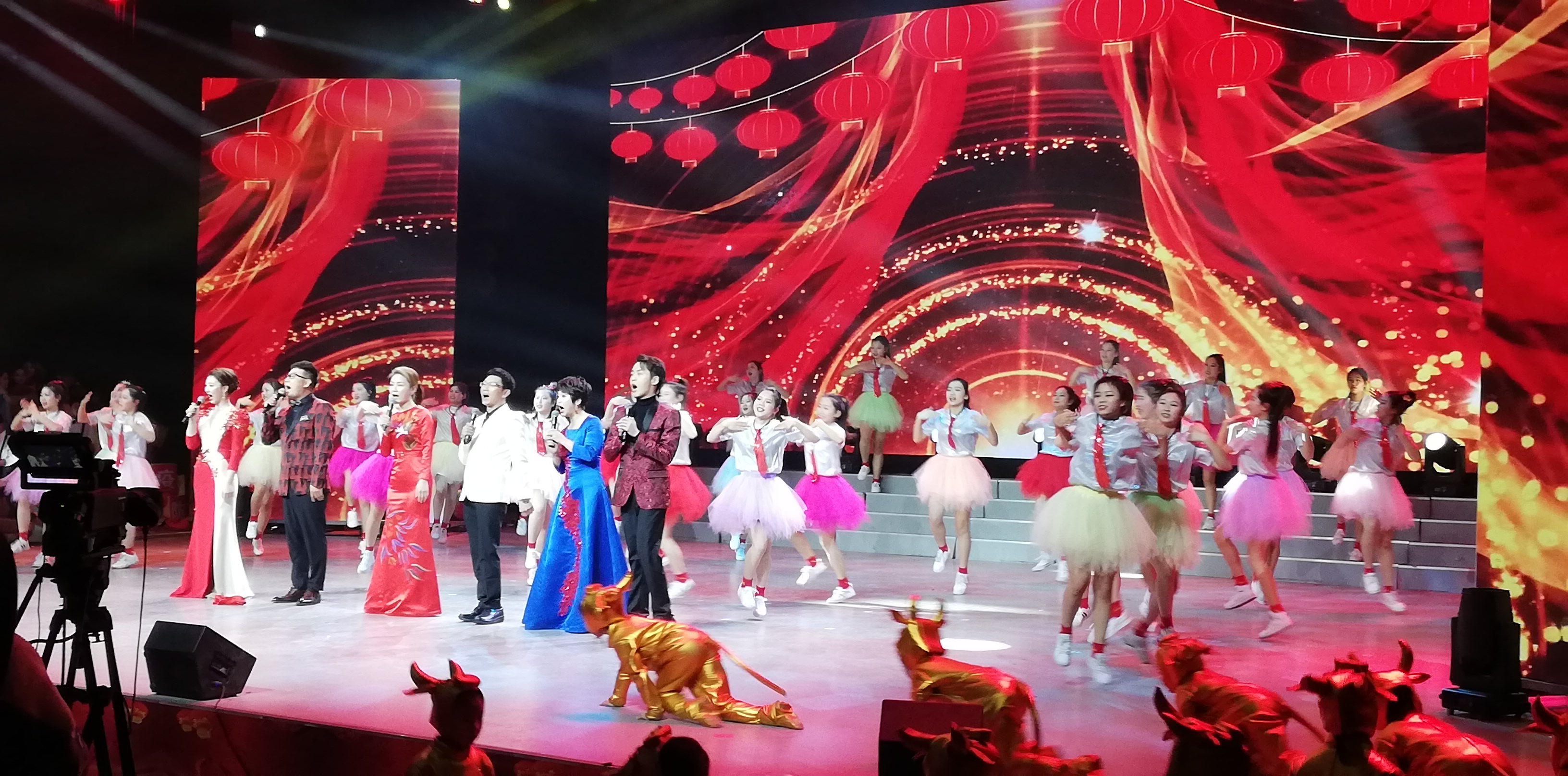 當(dāng)晚,彩排現(xiàn)場氣氛歡樂,吸引了眾多市民到場觀看。晚會彩排在開場歌舞《金牛賀歲》中拉開序幕。整臺晚會舞美設(shè)計(jì)絢麗,節(jié)目編排新穎。10多個(gè)節(jié)目貼近實(shí)際、貼近生活、貼近群眾,有提振士氣、鼓舞人心的歌朗誦《我自豪 我是周口人》,有歡樂喜慶的歌曲聯(lián)唱《在希望的田野上》、《春天的故事》、《我和你》,有名段聯(lián)唱《梨園新聲》,有令人驚嘆的雜技《動物樂園.新春大聯(lián)歡》。