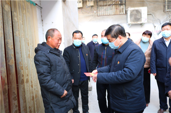 2月2日,在春節(jié)來臨之際,鹿邑縣委書記、縣長李剛帶著掛念和關(guān)懷深入基層,看望慰問困難勞模、困難職工、困難群眾、傷殘軍人代表,向他們致以節(jié)日的問候和美好的祝福,并送上慰問金和慰問品??h人大常委會主任李國際,縣委常委、常務(wù)副縣長陸志杰,縣委常委、縣委辦公室主任侯自峰,縣委常務(wù)、副縣長王曉征,縣委常委、統(tǒng)戰(zhàn)部部長程衛(wèi)東,副縣長楊彩、翟杰、孫自豪,縣政府領(lǐng)導成員王玉超一同慰問。