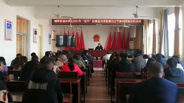 在春節(jié)、元宵節(jié)即將來臨之際,川匯區(qū)城南街道辦事處開展2021年“雙節(jié)”前廉政黨課暨廉潔過節(jié)集體談話活動(dòng),要求黨員干部增強(qiáng)廉潔自律意識(shí)、筑牢思想防線,確保過一個(gè)風(fēng)清氣正的“雙節(jié)”。