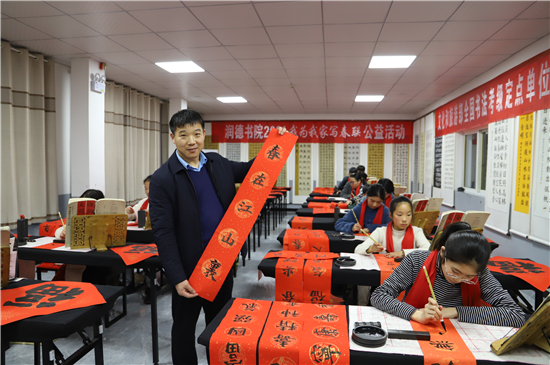 “春聯(lián)是我們中華民族獨(dú)有的文化符號(hào),象征著喜慶,蘊(yùn)含著吉祥。我為我家寫春聯(lián)公益活動(dòng)具有很強(qiáng)的廣泛性、群眾性、公益性,送祝福、亮成績與弘揚(yáng)傳承中華優(yōu)秀傳統(tǒng)文化相結(jié)合,在學(xué)生心中樹立了文化自信?!标悈顷懶牢康卣f。