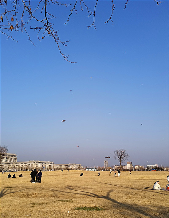 2月5日,我市天氣晴朗,不少市民帶著孩子來到戶外,享受溫暖的陽光、和煦的春風、與孩子一起放紙鳶的天倫之樂。