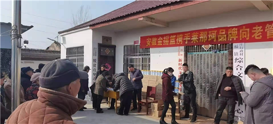 牛年春來(lái)早,農(nóng)家喜事多。2月4日下午,在沈丘縣留福鎮(zhèn)老官莊行政村,許多老人齊聚一堂,依次領(lǐng)取大米、奶粉等愛心年貨……
