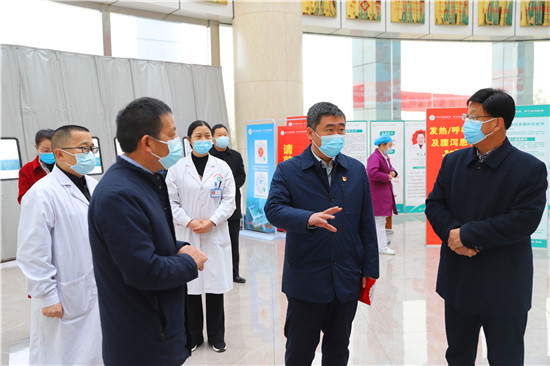 聽取匯報后,孫鵬前往發(fā)熱門診實(shí)地查看了解疫情防控工作的各項(xiàng)措施,就當(dāng)前疫情防控重點(diǎn)與一線人員進(jìn)行深入交流。新冠疫情暴發(fā)以來,港區(qū)醫(yī)院主動承擔(dān)公共衛(wèi)生職責(zé),協(xié)助港區(qū)黨委、管委會為港區(qū)群眾筑起了一道堅固的健康安全防線。武漢疫情暴發(fā)期間,周口港區(qū)醫(yī)院派出一支由8人組成的援鄂醫(yī)療隊前往武漢,在武漢商職醫(yī)院收治新冠肺炎患者117人。孫鵬對港區(qū)醫(yī)院在新冠疫情防控工作中展現(xiàn)出的擔(dān)當(dāng)、作為進(jìn)行表揚(yáng),對8位援鄂醫(yī)療隊員冒著生命危險,無私奉獻(xiàn)、勇于擔(dān)當(dāng)?shù)木礃I(yè)精神表示贊賞。