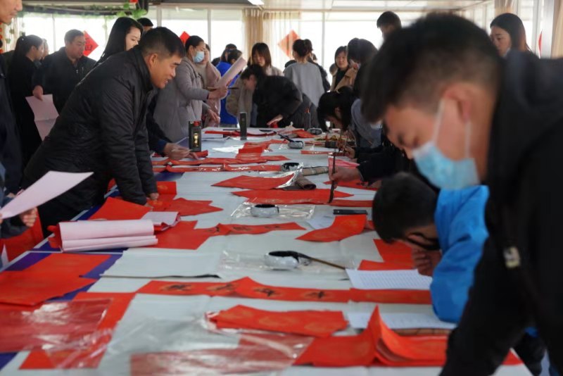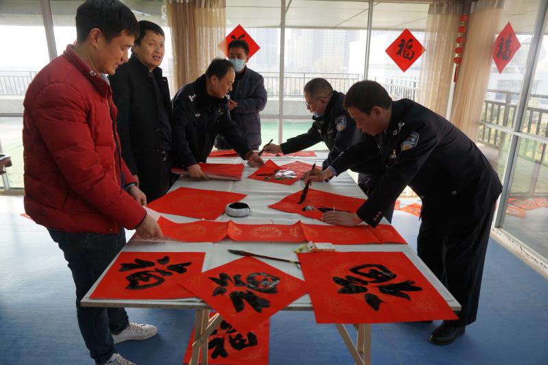 金牛賀歲來祥瑞,翰墨飄香迎新春。為弘揚(yáng)中華傳統(tǒng)文化,落實“從優(yōu)待警”舉措,傳遞市局黨委的親切慰問和關(guān)心關(guān)懷,豐富警營文化生活,營造歡樂祥和的節(jié)日氛圍,2月9日,項城市公安局在三樓大廳開展書贈春聯(lián)活動,孫沄、閆永紅等5名警營書法家及16名蓮溪書院師生揮毫潑墨,現(xiàn)場為民警、輔警及工作人員義寫春聯(lián)、福字2000余套,受到了廣大民警、輔警的熱烈歡迎和充分好評。