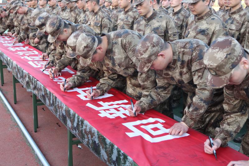 在十幾米“向新時(shí)代衛(wèi)國(guó)戍邊英雄官兵學(xué)習(xí)”的條幅上每一名應(yīng)征青年都鄭重地簽上自己的名字。