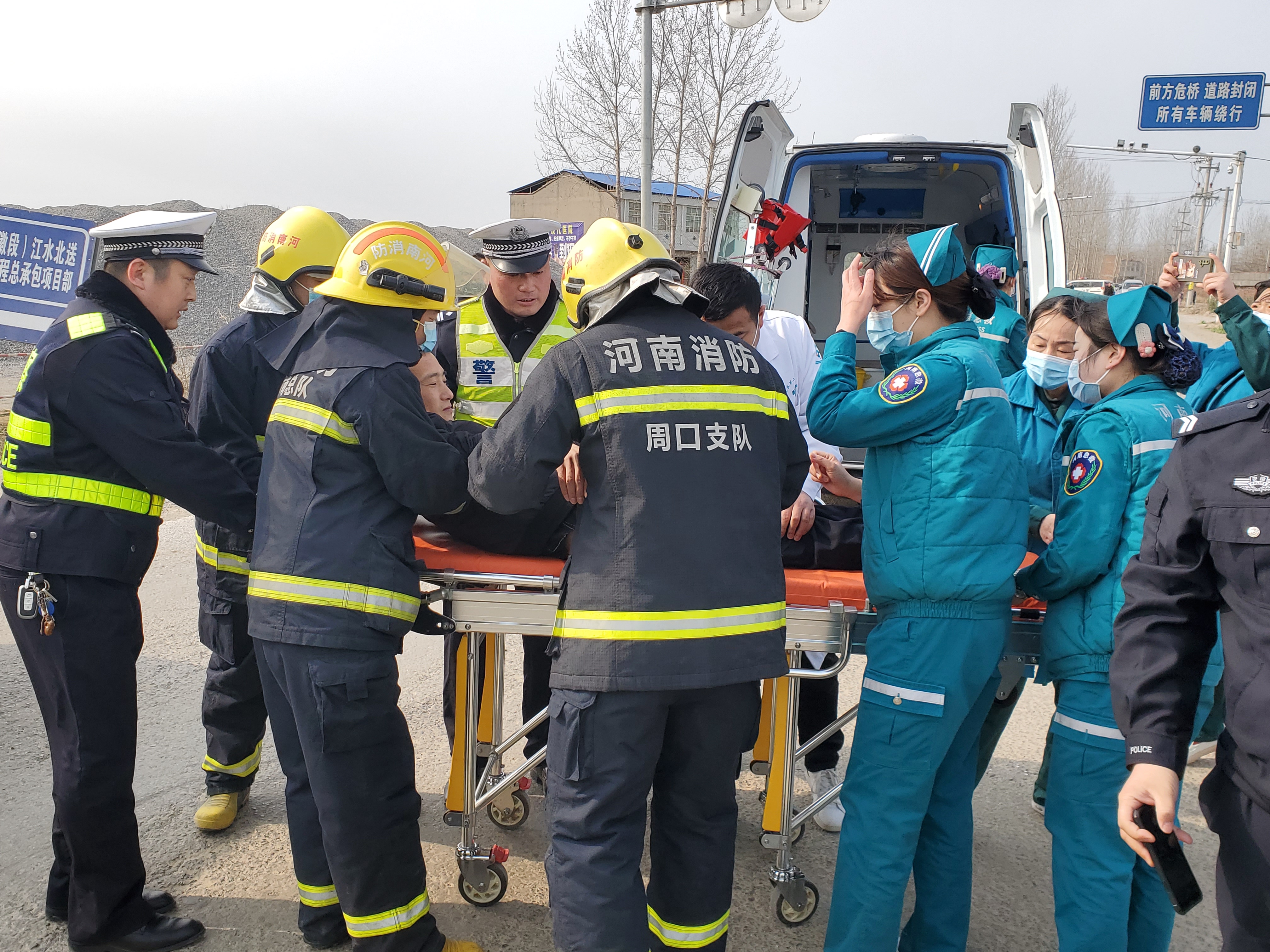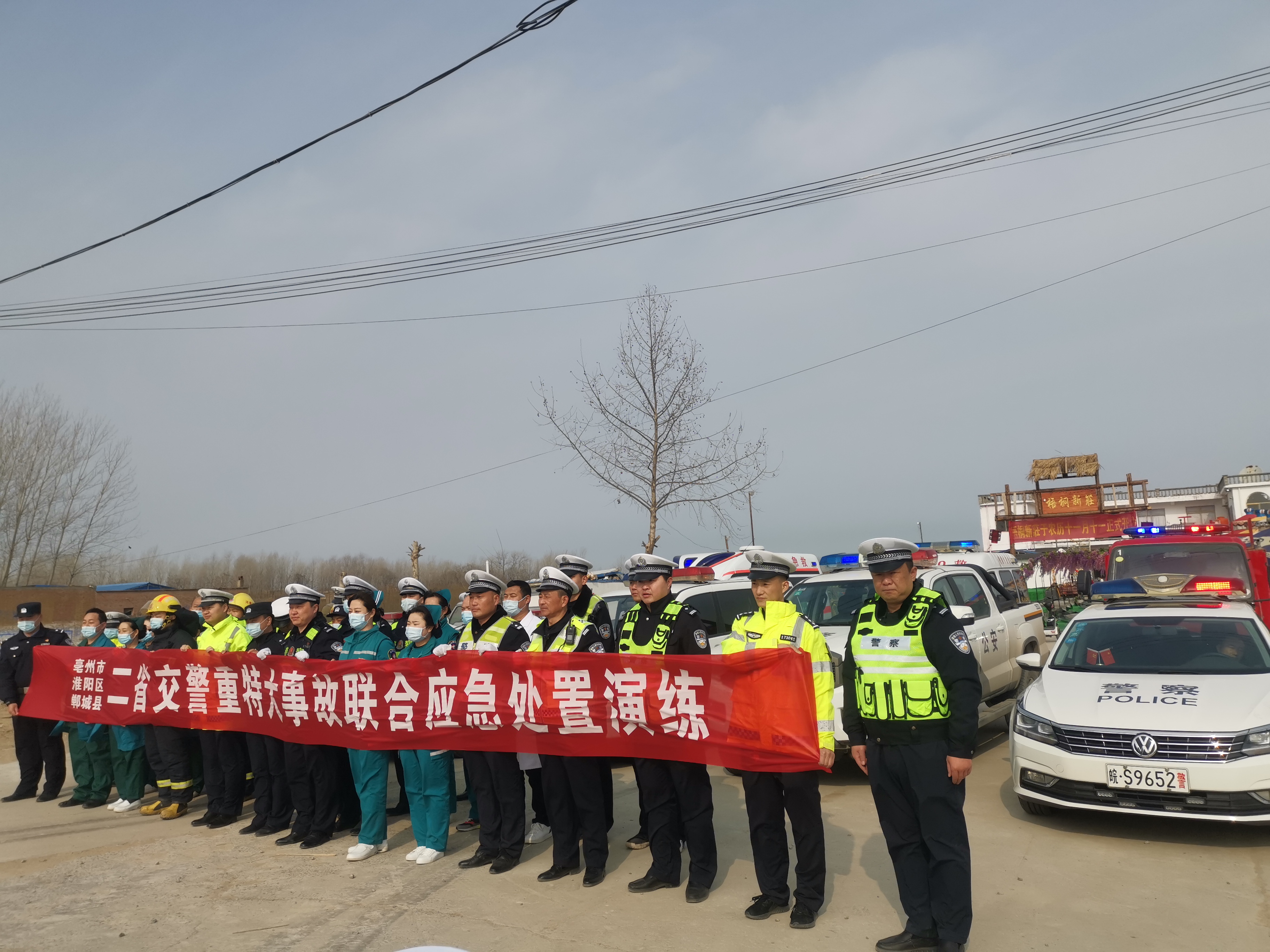 為提高冬季惡劣天氣條件下突發(fā)道路交通事故應(yīng)急處置能力、各部門之間的協(xié)同作戰(zhàn)以及應(yīng)急指揮系統(tǒng)的組織協(xié)調(diào)能力,最大限度減少因交通事故導(dǎo)致的人員傷亡,確保人民群眾生命財產(chǎn)安全,鄲城縣公安交通警察大隊聯(lián)合淮陽區(qū)公安交通警察大隊和安徽省亳州市公安交通警察支隊四大隊雙溝中隊,及鄲城縣公安局南豐鎮(zhèn)派出所,應(yīng)急管理、鄲城縣麗清醫(yī)院,鄲城縣中心醫(yī)院,道路基金救助辦公室等部門開展了道路交通事故快速發(fā)現(xiàn)、及時救援、有效救治、妥善救助的“四位一體”聯(lián)動型應(yīng)急處置演練活動。