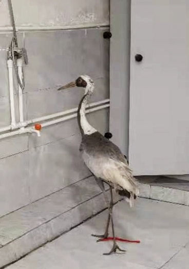 2月24日,鄲城縣吳臺鎮(zhèn)村民在田地里干活時(shí),發(fā)現(xiàn)一只“大鳥”,身體虛弱的趴在地里不能飛行,村民看著這只大鳥一雙腿非常長,像是丹頂鶴,他不敢怠慢,立刻撥打救助電話,鄲城縣自然資源局接到救助電話后,局長楊玉民、分管副局長李北斗高度重視,立即指派鄲城縣森林公安局及野生動(dòng)植物保護(hù)和自然保護(hù)地管理股工作人員前往救助。經(jīng)周口市野生動(dòng)物救助中心工作人員現(xiàn)場觀察初步鑒定后認(rèn)為,這是一只白枕鶴,屬于國家一級保護(hù)珍禽。據(jù)百度了解:白枕鶴(學(xué)名:Grus vipio)體形與丹頂鶴相似,略小于丹頂鶴,而大于白頭鶴。上體為石板灰色。尾羽為暗灰色,末端具有寬闊的黑色橫斑。世界白枕鶴數(shù)量稀少,種群僅存不足5000只,白枕鶴棲息于開闊的平原蘆葦沼澤和水草沼澤地帶,也棲息于開闊的河流及湖泊岸邊,以及鄰近的沼澤草地,有時(shí)出現(xiàn)于農(nóng)田和海灣地區(qū),尤其是遷徙季節(jié)。村民發(fā)現(xiàn)的這只白枕鶴可能就是在遷徙過程中受傷才從空中掉落。