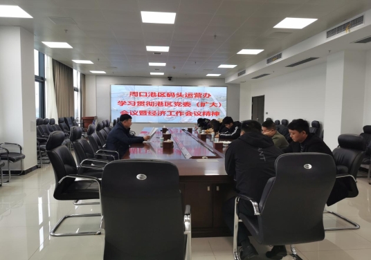 3月1日上午,周口中心港碼頭運(yùn)營辦召開學(xué)習(xí)會(huì),深入學(xué)習(xí)港區(qū)黨委(擴(kuò)大)會(huì)議暨經(jīng)濟(jì)會(huì)議工作精神。運(yùn)營辦主任段傳奇主持學(xué)習(xí)會(huì)并對(duì)如何貫徹落實(shí)好港區(qū)黨委(擴(kuò)大)會(huì)議暨經(jīng)濟(jì)會(huì)議工作精神提出工作要求,運(yùn)營辦全體成員參加學(xué)習(xí)。