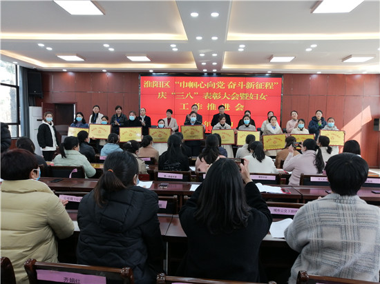 副區(qū)長朱希炎宣讀了《關于表彰2020年度淮陽區(qū)“三八”紅旗集體、“三八”紅旗手等先進集體和個人的決定》,抗疫巾幗先進個人韓曉杰、農(nóng)村致富女能手黃寶娟作了典型發(fā)言。