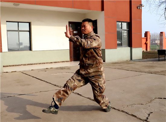 “班長王不老,向班長王學(xué)習(xí)。好!”準(zhǔn)新兵們抱以雷鳴般的掌聲。掌聲未息,王成華虎虎生風(fēng)地打了一套軍旅拳:弓步?jīng)_拳、虛步砍肋、穿喉彈踢……擋擊絆腿、轉(zhuǎn)身別臂、擊腰鎖喉……每一個(gè)動(dòng)作都顯得那么的到位,整套下來剛勁連貫、豪情奔放,王成華大氣不喘。