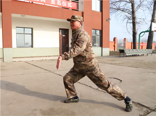 “立正!向右看齊!”3月4日,在鄲城縣民兵訓(xùn)練基地,2021年春季征兵預(yù)定新兵訓(xùn)練場上,53歲的訓(xùn)練班長王成華從骨子里喊出這句口號(hào)、集結(jié)準(zhǔn)新兵隊(duì)伍。從1992年“鐵軍”127師退伍進(jìn)入人武部至今,這句口號(hào)他已經(jīng)喊了29年,始終底氣十足。同事和準(zhǔn)新兵們尊稱他為“班長王”。