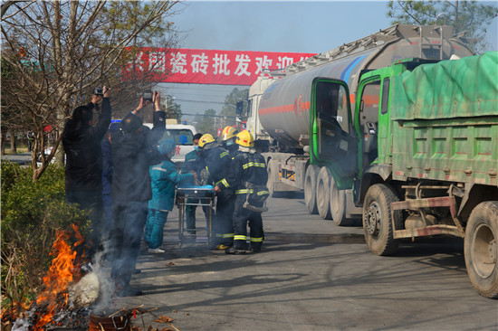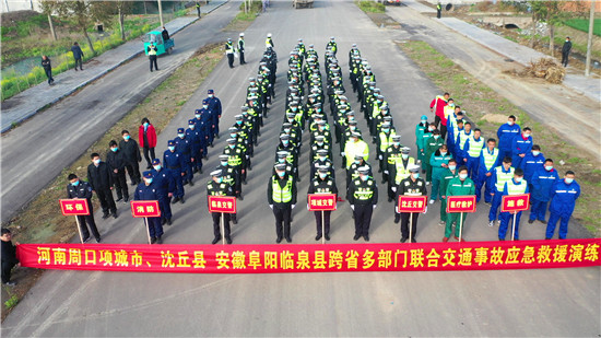 為進(jìn)一步健全完善涉及危險(xiǎn)品運(yùn)輸車事故應(yīng)急處置和搶險(xiǎn)救援機(jī)制,加強(qiáng)省際國省道安全管控,提高突發(fā)事件應(yīng)急處置和救援能力,經(jīng)共同研究決定,3月3日上午,河南省公安廳交警總隊(duì)組織周口市公安局交通管理支隊(duì)和安徽阜陽市公安局交通管理支隊(duì)聯(lián)合兩地交警、環(huán)保、消防、施救、120急救中心等多部門在兩市交界處舉行道路交通事故應(yīng)急救援聯(lián)合演練,演練內(nèi)容包括接處警、交通管制、環(huán)境監(jiān)測(cè)、營救被困人員、處置?;?、事故現(xiàn)場(chǎng)勘察、事故現(xiàn)場(chǎng)清理等內(nèi)容。