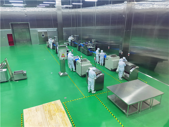 據(jù)了解,周口乾盛中央廚房是川匯區(qū)2020年重點招商引資項目。公司以綠色、健康、營養(yǎng)、安全的餐飲服務(wù)為宗旨,采用國內(nèi)先進的食品自動生產(chǎn)流水線,采取“統(tǒng)一配方、統(tǒng)一加工、統(tǒng)一配送”的方式,為全市大中專院校、中小學(xué)校、企事業(yè)單位等提供專業(yè)團膳服務(wù)。記者在現(xiàn)場看到,該企業(yè)的生產(chǎn)操作間細分為面食、烹飪、米飯、凈菜等獨立區(qū)域。操作間里的工作人員穿戴一次性消毒服裝、口罩、頭罩、鞋套,各司其職、有條不紊地操作設(shè)備。全廠安裝有300多個攝像頭,實現(xiàn)360度無死角監(jiān)控,可以隨時查看生產(chǎn)和配餐情況。在蔬菜清洗處理方面,該企業(yè)先對蔬菜進行拆箱、分揀并開始一次清洗,然后進行二次清洗、切割和脫水,使用凈化水對蔬菜進行旋流沖洗,并通過探針探測水的潔凈度,根據(jù)水質(zhì)量隨時更換。生產(chǎn)操作間內(nèi)的先進工藝和設(shè)備也格外吸人眼球,旋轉(zhuǎn)式燃氣炒鍋在這里被稱為炒菜機器人,讓炒菜實現(xiàn)了智能化、標準化,工作人員只需將切配脫水后的材料按照標準調(diào)配好入鍋,設(shè)置自動運轉(zhuǎn)程序就可以,不用人工攪拌。