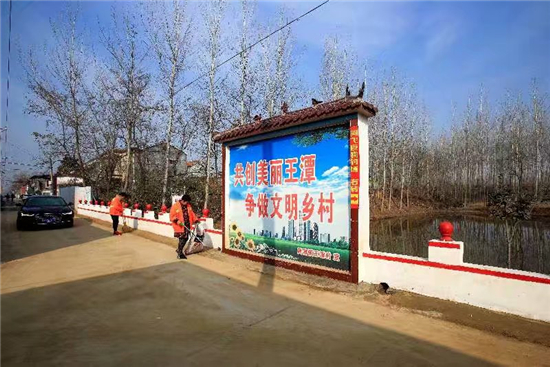 綠樹環(huán)抱的村落,四通八達(dá)的水泥路,溫馨雅致的文化長廊,花木掩映的庭院……初春時節(jié),位于周項路一側(cè)的商水縣黃寨鎮(zhèn)王潭行政村處處美麗如畫。