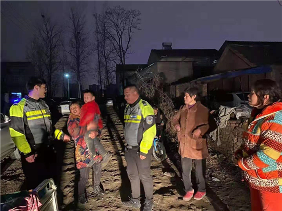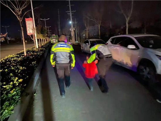 3月12日晚,鄲城縣交警大隊鐵騎中隊副中隊長張鑫值班過程中發(fā)現(xiàn)一位迷路小孩,張新等人想方設法把孩子護送回家。