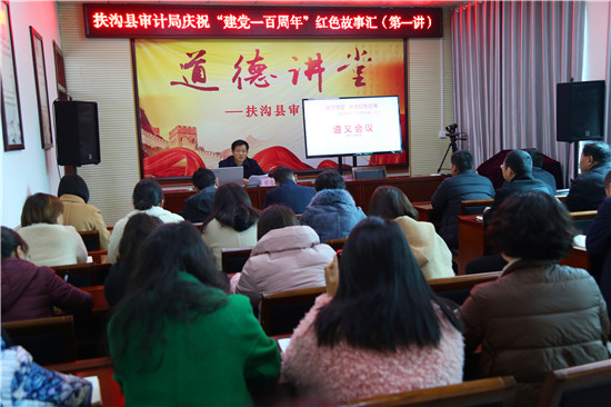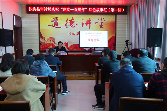“遵義會議結(jié)束了王明左傾機會主義路線在黨中央的統(tǒng)治(4年),確立了以毛澤東為代表的新的中央正確領(lǐng)導(dǎo)。在中國革命的危急關(guān)頭,挽救了黨,挽救了紅軍,挽救了中國革命,是我黨歷史上一個生死攸關(guān)的轉(zhuǎn)折點?!?月15日,扶溝縣審計局黨史學(xué)習(xí)教育“紅色故事匯”開講了,局長翟連生主講,局機關(guān)全體黨員干部參加了學(xué)習(xí)。