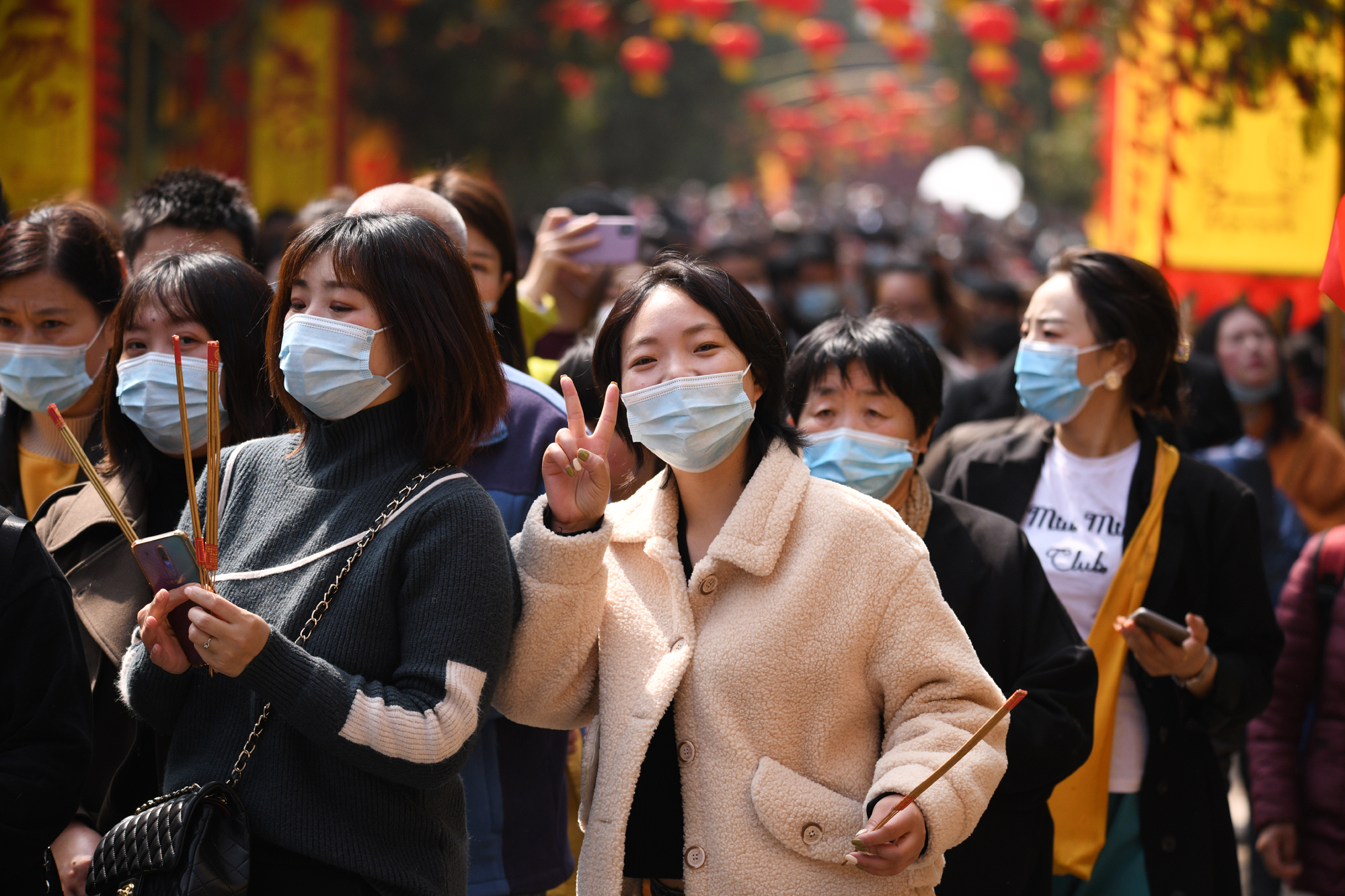 帥氣游客逛廟會(huì)不忘分享開心