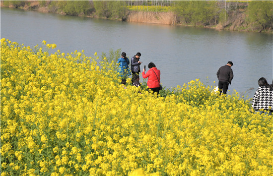 花香蝶自來。每到周末,許多游客就會來到這里,徜徉在美麗的花海中,呼吸著新鮮的空氣,遠(yuǎn)眺緩緩東去的碧水,共賞一場美麗的花事,盡享幸福生活。許多俊男靚女用他們善于發(fā)現(xiàn)美的慧眼,紛紛進(jìn)行自拍,將這份極致的美景定格在自己的相機(jī)鏡頭里。