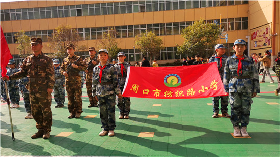 3月25日,周口紡織路小學(xué)學(xué)生正在參加“國防教育進(jìn)校園”主題活動(dòng),一天下來,站軍姿、學(xué)旗語、體驗(yàn)迫機(jī)炮、觀看戰(zhàn)術(shù)表演和戰(zhàn)爭(zhēng)情景模擬等,讓孩子們懂得“祖國神圣不可侵犯”,愛軍報(bào)國意識(shí)大大增強(qiáng)。